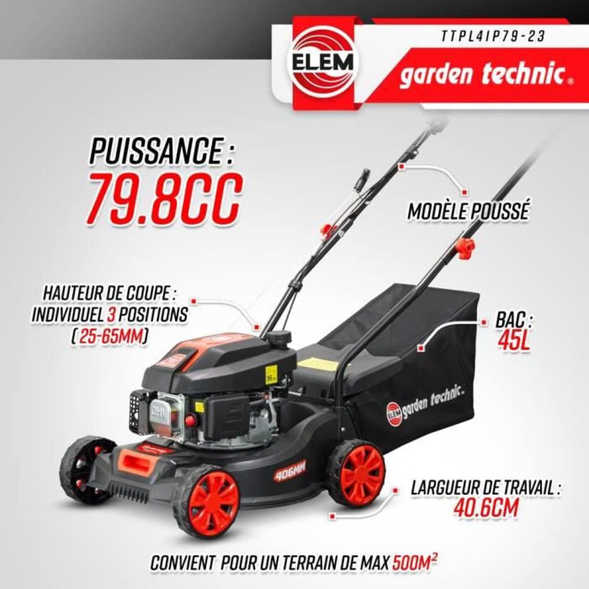Tondeuse Thermique poussée 79.8CC avec Carter en Plastique – Elem Garden Technic[85]